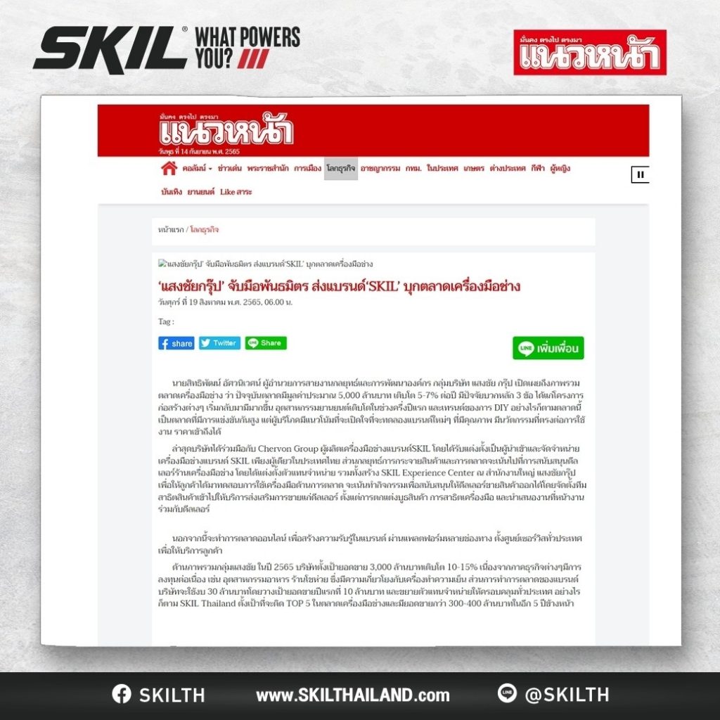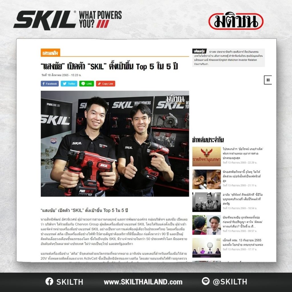 SKIL Thailand is very honored that all media Has provided great support and publicity of SKIL’s news in the past.